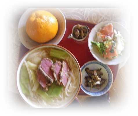 椎茸の佃煮でそうめんを湯がいて鴨そうめんとして・・・。