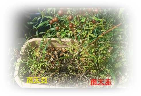 頂いてた赤と白の南天良く花が咲き実が付いてくれたといって