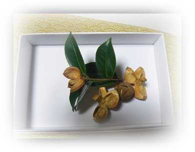 早々昨日の庭の片付けで見つけたつばきの種の殻を