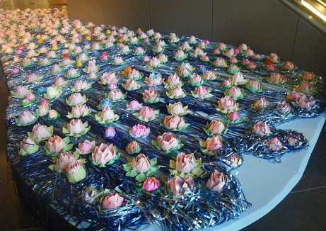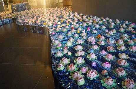 会場の中にはハスの花が水に浮かんでる模型に作って