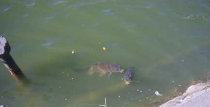 何とも何十年も見てるお濠にコイが泳いでるとは
