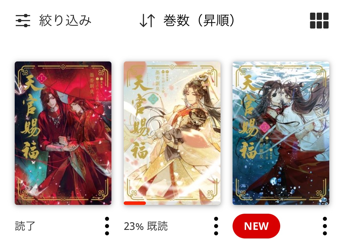 こちらのブログをご覧いただきありがとうございます!アニメを見てからどハマり中の「天官賜福」、年末年始休みに向けて小説の3巻を購入しました。アニメ、小説どちらも好きでAmazonプライム配信中に3周、小説もアニメ重複部分を読み直し。天官賜福 3【電子書籍】[ 墨香銅臭 ]小説の2巻半ばからアニメを超えた内容になり続きが気になりガンガン読み進めてしまい・・^^;日本語翻訳版は3巻までなのにあっという間に終わってしまいそうです(笑)アニメを見てから小説を一通り読み、再度アニメを見直すと殿下に対する三郎の表情が細かく表現されていて(優しい目元、そして口角がずっと上がっているw)何度見ても面白い、綺麗な映像と相まって見入ってしまいます。三郎の表情、セリフは文字で読んでも素敵なのですが実際に映像、声優さんの声で聞くとますますステキに見える!登場人物、映像、音楽など、全て好きになれるような作品に出会えたのは久しぶりでしばらくこの熱は続きそうです(^^)小説の4巻も近いうちに発売されると良いなぁ。。#楽天ショッピング最後までご覧いただきありがとうございます!こちらもポチッとしていただけると大変励みになりますp(^_^)qにほんブログ村にほんブログ村