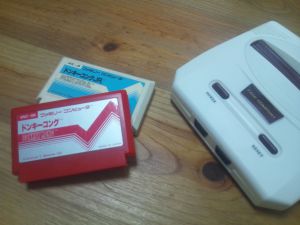 ファミコン(正式には互換機)ですドンキーコングです、ジュニアですいまやっても面白いしです次は、ピンボールとかポパイとかしたいです