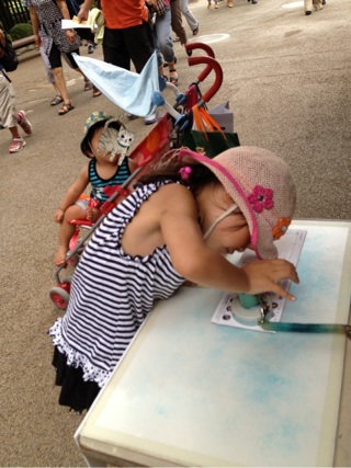 おはようございます 今日も残暑が厳しい感じですね~ 前に、母が遊びに来たときに近所の高島屋で五感の桃のロールケーキを買ってくれました 期間限定だったような‥‥ 生地が良い色ですよね~ 断面アップで 桃がゴロゴロ入ってます 生地はしっとりフワフワで、桃も甘くて美味しかったです お母さんありがと~~ それからこれも夏休み中ですが、高島屋の横の専門店でサンリオのお店が臨時出店してました 去年も来てたから、毎年きてるんだろうなぁ。 普通のサンリオのグッズのお店は専門店の中に入ってるんですが、夏にやってくるのは、金券を買って、砂絵やヨーヨーすくいなど色々な事が出来るんです ほーちゃんもいくつかやってました めっちゃ真剣です こちらは宝探し その頃ゆうちゃんはとゆうと‥‥ 爆睡でした