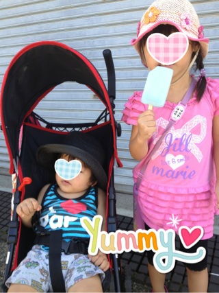 おはようございます 3連休の土日は岸和田に行ってました まずは土曜日から 土曜日はだんじりが好きな義母のおともで、私とほーちゃんとゆうちゃんとで4人で行きました 車を停めて、だんじりが通る所に向かって歩いているとはっぴを着ているお兄さんがいきなり『アイスいるか~~??』って言ってガリガリくんを2本くれました なんかラッキー 暑いし、ほーちゃんとゆうちゃんは美味しそうに食べてました で、すぐに前の道をだんじりが走っていきます 停まっているだんじりがあったので記念に だんじりも良いけどほーちゃんのお目当ては出店です たくさんの出店があってなんか私もワクワクします 最初にしたのは金魚すくい 真剣です まだあんまりすくえないだろうなぁって思っていると‥ 金魚がけっこう弱っていてすくえてました(笑) ほーちゃんは大喜び おばあちゃんにもスイッチ入れると光る星のステッキを買ってもらってました 他には、かにすくい、かめすくい、えびすくい、ひよことか色々ありました だんじりももちろんたくさん見れましたよ 帰り際に曲がり角で倒れそうになっただんじりがあって見ててスリル満点でした また明日に続きま~す