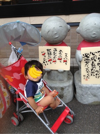こんばんは さぼってばっかりですいませんm(_ _)m 17日の夜からほーちゃんが嘔吐し、翌日には下痢でウイルス性胃腸炎になってしまいました。 その後元気になったと思ったら、ほーちゃんが元気になった夜からゆうちゃんが嘔吐完全にうつりました。その翌日には義母が調子悪くなり、ゆうちゃんと義母が治ったら次は、主人と義父にうつりました。 途中実家に帰ったため、主人が治る頃に実家の父親もうつりました 恐るべき感染力 この状況で1人大丈夫な私って‥ まぁでもうつってられないので良かったです 色々看病疲れもあり、用事もありで放置しててすいません みなさんも体調崩さないよう気をつけてくださいね おまけ 九州旅行中みつけたおじぞうさんと 明日は久しぶりに念願のコヤマに行ってきま~す