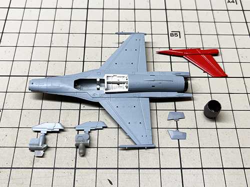 垂直尾翼は 右側を C68モンザレッド で、左側を ガイア ピュアブラック で塗装。