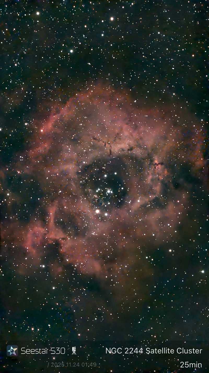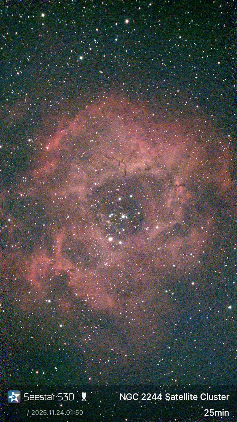尚、AI Denoise+Seestarアプリで出来る範囲の画像補正をしています。また、自動導入後に星雲全体が真ん中に来るように手動で位置調整しています。