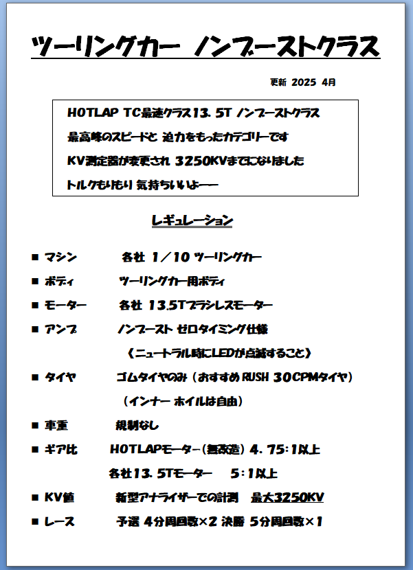 速いぜ ツーリングカー ノンブーストクラス レギュ更新 2025 4月よろしくお願いいたしますー