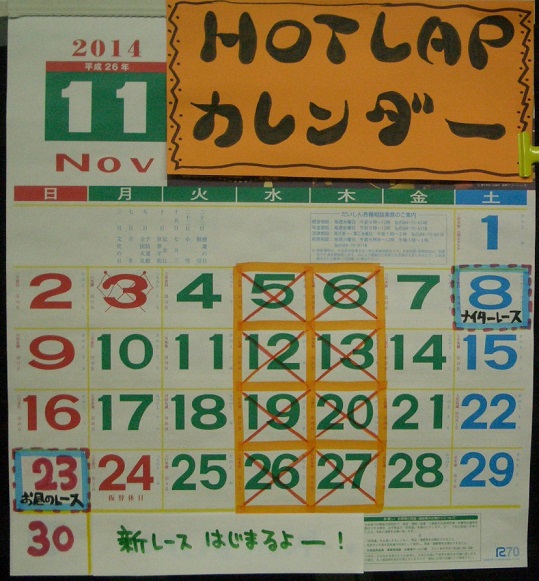 寒くなってきましたー 季節の変わり目 体調崩さないでくださいねHOTLAP 11月のカレンダー 見てね8日と 23日に レースがございますー前々から11月より レースのカテゴリーと レギュレーションに テコ入れするとゆっていて先に ブログのほうに UPさせていただきましたけっこう 変わっているところがございますので ご確認くださいませ この 右の カテゴリーのとこから とべますので見てね時代の流れもあり 8200rpmレース キャノンボール GT500オープンがなくなり 新しく 9000rpmツーリングカークラス と タミチャレGT そしてF1グランプリが 登場でございますHOTLAP ここ数年 1/12ストッククラス 大人気 お昼レースにも 登場 タミチャレGTも お待たせしました 毎月登場です連絡事項ーー 6700rpmスポンジDD車レース カーペット時 楽しんでいただいてありがとうございます アカオくんへ 8日 6700あるよ と言ってましたが ごめんなさい 今月はなかったですアスファルト時でも 6700レース開催したいと思ってますので すいません(*_*)よろしければ GT500レンタカー ご用意してありますので ご来店ご参加よろしくねさて 8日は HOTLAPナイターレースTTカップ GT500ストッククラス ミニクラス 1/12ストッククラス の4つのカテゴリー 特に ミニクラスは レギュが 変わってますので お気をつけくださいTTは ハンデがキャリーオーバーしていきますGT500は 回転数が 200上がっています バッテリーの進化で速くなっていってますわからないことあれば お気軽にお聞きくださいね23日は お昼のレース 定番の 13000rpmツーリング 新レース 9000rpmツーリングお昼にも登場 1/12ストック 流行ってます タミチャレGT速度がマイルドになって復活 F1グランプリ の 5つのカテゴリーあれ 1/12モデファイは? すいません 今回はお休みでお願いします1/12レーシングについては カーペット時の スポンジ祭りのようにアスファルトコースでも 12のみでの貸切イベントを考えていますので お待ちくださいませ楽しく 走りやすいのが 一番だと思いますので(^-^)では 11月も よろしくお願いいたしますー
