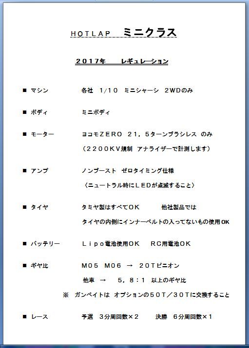 新 ミニクラス レギュレーション ver32017年 1月08日 更新