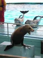 今日は水族館にきた。去年もきたことあるけど覚えていなかったのですごく楽しかった。館内をうろうろするのが一番楽しかったけど、イルカアシカショーはちょっと退屈だった。 前に5歳くらいのお兄ちゃんが二人座っていた。ショーの間中、ボクはさっきお姉ちゃんに泣かされた方の子の頭を叩いたり、蹴飛ばしたりして、父ちゃんと母ちゃんに羽交い絞めにされていた。 アシカが鼻先にキューピーちゃん人形を立たせているのをボクは帰ってマネをしてみた。うちにあるキューピーちゃん、頭と手をもぐだけのおもちゃだと思っていたけど、こんな遊びもできるんだねー。ちなみにボクは頭にのせてみた。両手で支えて。 それから海に行った。今日は風があって少し肌寒い。去年は怖くて泣いたけど、今年は母ちゃんが波とおいかけっこをするのをみて、ボクもマネをしてみた。水に足だけはいったけど、母ちゃんにぶつかって転倒。背中から頭から砂がついて濡れた。でもすごい楽しかった。着替えを持ってきてて良かったよー。母ちゃんのウサギサイト