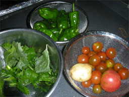 アツ婆が肥料をやったり草を抜いてくれたというので、母ちゃんったら畑に一週間も行かなかった。そして冷蔵庫に肥料にすべくとっておいた生ゴミが増えすぎたため、一週間ぶりに畑に行ったら、アツ婆が、ふれあい農園でお友達になったおばあさんとおしゃべりを楽しんでいた。 母ちゃんもそのおばあちゃんの指南で、予定していなかった収穫をすることとなる。 茄子大きいの1本に小さいの2本、ピーマン2つ、苺2粒、そしてジャガイモは全部抜いた。 茄子はアツ婆がマメに虫をとってくれているおかげで病気にもならず、かぼちゃもアツ婆が受粉を手で助けていたので、たくさん出来そうだ。 ジャガは、ヤエ婆んちのゴミから出たやつ。小さい芋がいっぱいできていた。苺は日当たりがいいせいで、なんか堅い。見るからにまずそう。 おばあちゃんの畑のジャガイモは立派で、レジ袋いっぱいにアツ婆がもらっていたのを、母ちゃんも4つほどもらった。 予想外の大収穫。ピーマンは店頭のものより苦味が強く、ジャガも土の香りが強かった。自分で作ると、やっぱりおいしいね。母ちゃんのウサギサイト
