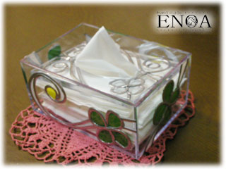 ●製作日:2012年4月27日~5月1日(製作時間7時間)●尚江オリジナル4/27:製図をしようと朝から準備し、HARURUを寝かせようとするも、宅配便2回・電話1回に邪魔をされHARURUが起き、なかなか製図ができず、行き場のない怒りを覚える。4/30:製図を完成させ、パーツをカットしてシートに貼り付ける。5/1:朝からHARURUがよく寝てくれたおかげで、3時間半も作る時間ができて、いっきに完成(^^)v HARURU、ありがとう! 初めて作ったグラスアートなのに、いきなりオリジナルを作り、ふたの部分を失敗した。 リード線とシートを貼るので、ずれると裏の糊がガラス面を汚すのね。これをキレイにできないのね。いや、根気良く拭けばいいのだけど、なんか効率よく糊をとれないだろうか。。。ティッシュケースにグラスアートを施すことによりステンドグラスのポケットティッシュケースに...価格:420円(税込、送料別)