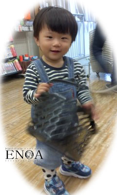 (母ちゃん記)昨日刺繍して、今日は縫製をした。葉っぱに、ちょこっと残ったレースをつけてみた。可愛くなったけど、葉っぱじゃなくなり、なんだかわからない緑の名札になってしまった。これは、4日から、毎月1回、3月まである育児サロンで使用する名札。市が主催で、1歳児が対象、保育士さんがいろいろ教えてくれる。私の分は苗字だけ、HARURUの分は名前だけ。これでよかったのかしら?!