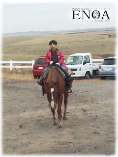 (母ちゃん記)先週の週末から続いていた嘔吐下痢の惨劇は、終焉をむかえまして、AKITYは昨日から学校へ、旦那は今日の午後から仕事にいきます。それで、頑張った自分へのご褒美に、さきほど、毛糸を6000分購入。にひにひ。段染めの美しい糸が、半額~30%OFFそれはそうと、皆様、ご心配をおかけしました。お詫びに?元気な乗馬写真を見てください。AKITYは11/4に熊本のエルパティオで外乗して、戻ってきた時の写真です。HARURUはAKITYのお下がりに、今夢中。みんなが乗馬しているのをみて、触発されたかしら?