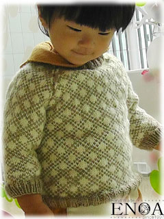●製作期間:2012年10月18日~11月15日●材料:ハマナカ 純毛中細 2色●尚江オリジナルデザイン●参考図書:模様1000 自分のウェアの残り糸で編みました。自分のはまた後日UPしたいと思いますが、下に着ているのが厚いのか、ちょっとピチピチかな。100cmで作るつもりが小さくなって、ゲージを失敗したかな。。。 撮影場所はアジア美術館。小さな子どもを遊ばせるスペースがあるので、中島潔展を見た後、HARURUを遊ばせています。ガラスの向こうは山笠。「山笠なあるけん、博多たい!」(←地方だけのCMかも・・) この日の夕方から、私が熱が出て38.3~38.8℃で、翌日の夕方点滴をうつまで熱が下がらずに寝込んでいましたので、元気になってUPしました♪