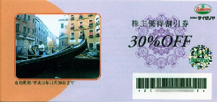株主優待 年1回 食事代金30%割引券(1枚で4名まで)