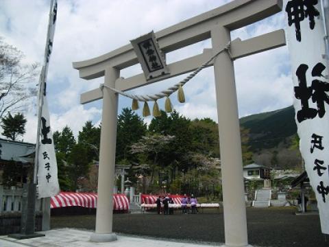 今日は須走市の伊奈神社に行ってきました。この辺りは江戸時代(1707年)の富士山大噴火で3メートルも火山灰が積もってしまい壊滅状態。かなり悲惨な状況になったのですが時の関東郡代・伊奈半左衛門忠順(いなはんざえもんたたのぶ)の並々ならぬ尽力でこの地方は救われることになりました。今回の震災後の政府の対応と比較すると雲泥の差と思われるような活躍をした人です。そんなこともあって伊奈半左衛門忠順が亡くなった後この辺りの人々がこの伊奈神社を作りました。この人のことを知ったのはばーど白鳥さんのブログからでした。詳しくお知りになりたい方は彼の4月4日あたりのブログを読んでみてください。ちょっと長いですが過去の富士山噴火のことなども詳しく書かれているので興味のある方はどうぞ(^^♪何かお祭りがあったらしく神社の中には大勢の人が・・・。とりあえず場所を確認してもう一度お参りにくることにしました。 向って右に伊奈忠順の銅像。左にお社です。