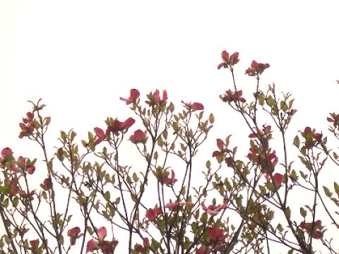 お弁当を届けに外に出たら結構な雨が降っていてうっとうしいお天気。桜もほとんど葉桜になった今今度は街路樹の「ハナミズキ」が咲いています。 これはピンク系ですが白のもよく見ますね(*^。^*)