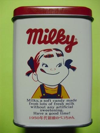 最近お菓子の写真を撮っていないなあと思いましたが面白い物がありました(^^♪高遠に行った時の帰りに寄った辰野PAでペコちゃんのミルキーの復刻缶がありました。1950年代初頭のペコちゃん・・・。かなりインパクトあります(・_・;) 1950年代中ごろちょっと可愛くなります(^^♪ 1970年代中ごろのペコちゃん。今のものに近くなりましたね^m^ 7個ミルキーが入っていました