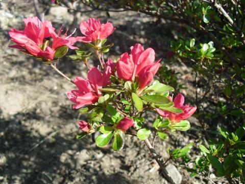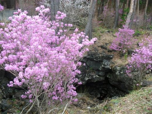 昨日ミツバツツジが咲いてるのを見て鳴沢の道の駅にちょっと寄りました。溶岩洞穴とミツバツツジ ミツバツツジと富士桜道の駅から見た富士山 昨日は雨が降ったり寒かったりしてあまりよく見えない富士山でしたがここでは良く見えました