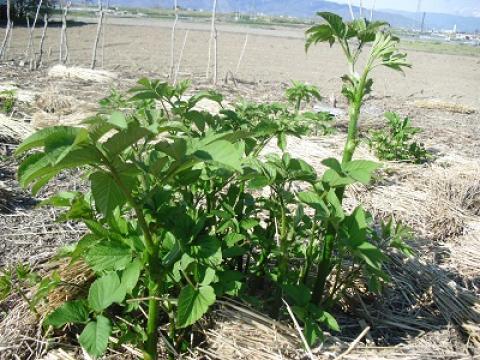 畑に行くとかなり成長したウド。まだこのくらいなら「ウドの小木」くらいです。「ウドの大木」は2メートル近くになります。この中で一番大きいのは60センチくらいです。 これも食べられませんね「葱坊主」。 結構可愛いキャベツのお花です^m^ 無理すれば食べられないことも無いですが・・・もう少し早い方が美味しかったんです