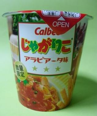 お昼あまり満足に食べられなかったのでちょっとコンビニでお買い物・・・・。ありました今日のは「数量限定」おなじみの『じゃがりこ』これは「アラビアータ味」どんなお味? トマトジュースが苦手な人にはお勧めできません(^_^;)「からしパウダー」が入っているので結構辛い!これを踏まえて食べてみてください