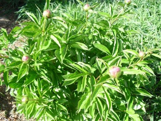 牡丹と芍薬は知らない方には区別がつきにくいと思います。パッと見ほとんど同じなので。蕾の写真でちょっと違いをお見せします。これが芍薬。草なので花が終わったら枯れてしまいますが多年草なので毎年ちゃんと出てきます。葉っぱに違いがあります。表面が光っている感じで幾分細いです。 牡丹は大き目の葉っぱで光沢はありません。これは木なので枯れません。 写真がうまく撮れていないのでわかりにくくて済みません。でも花に詳しくない私が唯一区別がつくものです