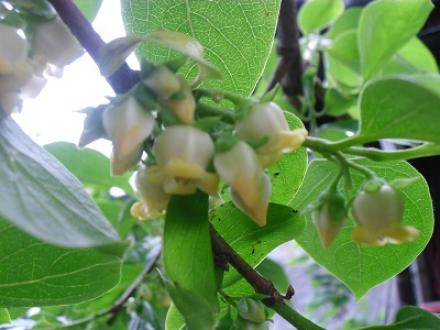 餅つきに行った時に柿の花が盛りでしたジロウ柿という今ではほとんど見られないものです。かなり大きな実がなりますが熟すまでにほとんど落ちてしまいます10年に1回くらい豊作になるのですが・・・・。大きな柿の木ですが花はかなり小さいです。1センチちょっとくらい。可愛いので見て下さい横から見た時。下から見た時。今年はたくさんなるでしょうか・・・。