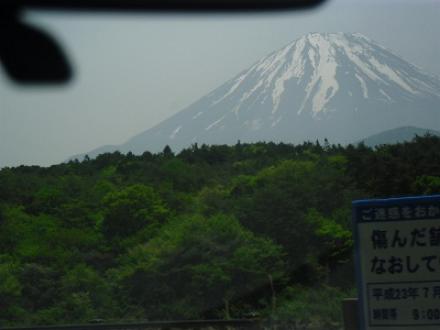 今日は忍野八海に行くことになりました。実は草餅が美味しいとでもごめんなさい。草餅は写真撮りそびれました忍野八海に行くまでの間に富士山を撮りました。これは精進湖の所から車の中で撮りました。結構雪が融けてますね。 これは河口湖から山中湖に行く途中の道の駅の側で。左のレーダードームは富士山の頂上で実際に使っていたものでお役御免でここに移したものです。これを作る時の気象庁の役人が藤原寛人筆名新田次郎でした。小説『富士山頂』を書いています。興味のある方はちょっと読んでみてください。 これは忍野八海から撮ったものです。 微妙にちがいますね。富士山は好きなのでついついあちこちで撮ってしまいます