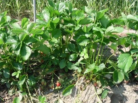 昨日摘んできたイチゴですがもう今日は色づいていました株は大きく育ってます。 こんな風に実がなってます 今日は6粒摘んできました
