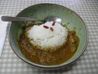 お昼は近所でのんびり外食もいいなあと思ったら・・・家人がどうもそれでは気に入らない雰囲気なにか美味しいお店を探してと言うので探してみましたが・・・・富士五湖の方に無いかと言うのです。「涼しいから」ですって(^_^;)で結局、道の駅「かつやま」に行くことに。ここは河口湖の西側で静かな地帯です。大きなホテルやお店などの観光施設が立ち並ぶ所と違ってなんとなくのんびりした感じ。駐車場は狭い!と思ったらちょっと上の方に広くスペースがありその方がレストランに近かったのでラッキーでした。「いとりき」というお店のカレーが食べられるのですが結構美味しいというので3人でインドカレー・ビーフカレー・ココナッツカレーと食券を買ってみました。食べだしてしまったのですが一応撮りました私はココナッツカレー。結構香辛料がきいているカレーで辛めです。 エスニックな感じが好きな家族なのでこのカレーは美味しかったです