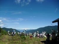 朝8時に出かけるぞ!と家人が言ってましたがその本人が起きなくて9時過ぎにやっと出発。連休中日で混むかしらと思いましたが途中の道では特にそんなことも無く順調に「上高地乗鞍スーパー林道」の白樺峠に到着!駐車場の所に大型バス2台がちょうど着いた所でした。やはり結構な人が見に来るのですね~!駐車場の所から20分ほどで「たか見の広場」へ。ハックさんがブログで20分と書いてあったので大したことはないのかしら・・・・なんて思ったら大間違いかなり急な上り坂なのでハーハー言いながら行きました。ただし家人と子供はスタスタ・・・。言い訳しますと今朝洗濯物を干そうとしてベランダのサンダルを履いたとたんつるっと滑って足の小指はぶつけるわ筋がちょっとおかしくなったから・・・ということにしておいてくださいでも忙しかったんですよ、私は・・。とにかく「たか見」の広場に着いてちょうど12時だったのでお昼にしました。快晴でとてもいい眺めだったのでただのサンドウィッチも美味しく感じましたこんな眺めでした。 さあ渡りのタカ達は飛んでくれるでしょうか・・・最初のうちはなかなか飛ぶ様子もなかったのですが1時近くなった頃1羽、2羽と・・・。「あれはハチクマ。こっちはクマタカ」もう何度も見に来ているような方が指さし言います。結構高い所でクルクル旋回したりします。さっさと通り過ぎるわけではないのですね!ちゃんとショーを繰り広げていってくれるので注目されているのをわかっっているのかしら?なんて思ってしまいましたしばらくポツポツとしか飛んでこなかったのですがそのうち急に増えて20羽くらいに。それが空高く旋回します!わあ凄い!と感心して見ていると「そろそろ帰ろうよ~」という何とも現実的なわが子の声。1時間くらいのことでしたが説明付きのタカのショーを見せてもらい面白かったです。あと小さいタカが大きいタカに向かっていく場面があって「大きいのに先に見つかったら食べられるから小さいものは先制攻撃するんですよ」とベテランらしき方が説明してらっしゃるのが聞こえました。やはり自然は厳しいですね・・・・。望遠鏡を使ったのですが鳥のお腹の羽毛が白く見えました。結構綺麗でした。短い時間ですがとてもいい物が見られたり聞くことが出来て本当に良かったです