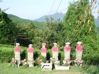 最恩寺から1キロくらい離れた山に富士山が見える場所があります。そこに六地蔵があります。実はこのお地蔵様首を全部取られてしまったのです今は新しい首が付けてありますが・・・。 ここには「月見寺」と言われるほどの景勝地だとか。でも今日は薄くしか富士山は見えないのでこの写真ではわかりませんよね 一応後ろのこの辺りに見えましたそれにしてもお地蔵様の首を盗るなんて何を考えているのでしょうねきっと今頃ものすごい天罰が下っているかもしれませんね。
