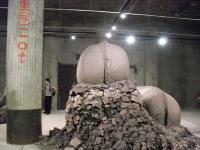 2階に入りますといきなりパフォーマンスが行われています!ジェイムス・リー・バイヤースという亡くなった人の作品で女性が5つのスポットライトの所を順番に回り続けるのです。意味がわかりませんロボットの動きのように正確にゆっくり・・・仏壇に備え付けの音の出るあの仏具(名前忘れました)のような容器を左手に持って右手でその容器をおおいスポットライトの所で立ち止まってすわり右手をその光の中心に置くのです。ノースリーブのロングドレスを身にまとい素足なので腰痛持ちの私としては冷えて腰が痛くなると想像してしまいましたアートでは無いですよね、そんな想像すみません・・・。家人は「あれはロボットだ!」と言ってました^m^写真を撮っていいものと悪い物があるので全部は撮れませんがこれは綺麗と思ったので・・・トピアス・レーベルガーの「他者」という作品。 これは陶器で作ってあります。他のものはガラスだったりします。マイク・ケリーの「シティ3」という作品。 あとは有名人としてイサム・ノグチ、荒木経惟、横尾忠則などの作品も。あと面白いと思ったのは八木良太「音楽の光」という作品。レコードの乗ったターンテーブルを「ろくろ」に見立てて作品を作ると言うもの。レコードが一応音を出しているように映像に合わせて音が出ていました。 今回結構映像物が多くてじっと見ているものですから疲れるかも・・・。こらえ性の無い私にはちょっと微妙な物もありましたこの横浜美術館で2時間はかかりました。ここから無料のシャトルバスで次の「日本郵船海岸通倉庫会場」へ移動しました。