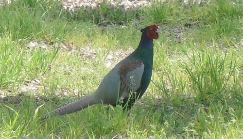今日は夏日だとか。エアロビで体を動かしてきましたがちょっとの時間でもう汗だくになりました。戻ってきたら目の前にキジが降りてきました5メートルくらいの所です。そーっとカメラを向けまして撮りました。いつもならとっとと逃げるのですが今日は落ち着いていました。間に柵があったからかもしれませんが。私のカメラでもまあまあきれいに撮れたのではと思います^m^にほんブログ村明日は天気が崩れるというので布団干しに洗濯をたくさんしました。応援ポチよろしかったらお願いいたします。(1人1日1回有効です)