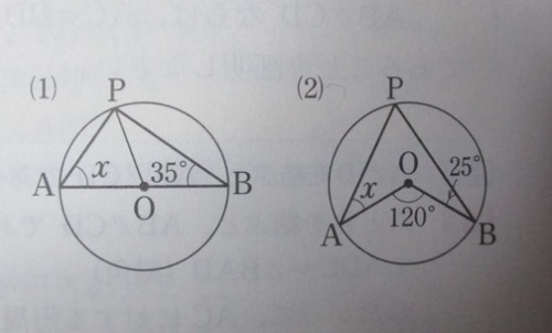 私は数学が苦手です。隣で息子が円周角の問題を解いていまして・・・「これがわからない」と問題を見せます。何とかなるかしらと思って挑戦してみますが・・・わかりません息子も初めはわからなかったようですが・・・私に定理を説明しているうちに理解できたようです。でも私にはよくわかりません。で息子は私に何とかわからせようと色々努力しまして・・・わかりました~あ~スッキリ人に教えるのって自分の理解が深まるんですよね入試まであと2カ月弱。この調子で大丈夫なのか、と息子が言いますがさぼっていたんだからしょうがないですよねでもわかった時の嬉しさは何とも言えない快感です。今頃ですがやらないよりはマシです一緒に問題と格闘することにしましょう。息子は「あ~疲れた!」と言ってましたが私は楽しかったです。暢気すぎな母でしたではおやすみなさいちなみに円周角の問題ってこんな感じです^m^Xの角度を求めます。にほんブログ村応援ポチよろしかったらお願いいたします。(1人1日1回有効です)