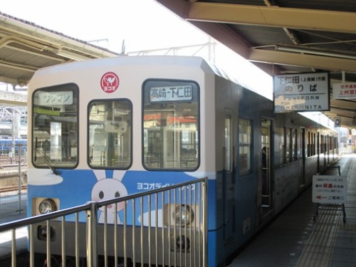 おはようございます!昨日は「テツ」父子のお付き合いで群馬の「上信(じょうしん)電鉄」に乗りに行ってきました!何故信州の「信」がついているのか・・・実は信州まで敷設する予定が世界恐慌(1929年)でとん挫したそうです。でもバスはあるそうですよ長野まで。群馬の高崎から下仁田(しもにた)まで1時間10分。普通は¥1100かかるのですが・・・1月1・2日は¥500のワンコインで乗り降り自由でした。とってもお得な気分になれましたでも家人は下仁田まで車ですから乗ってないんですけど・・・。(往復乗っている時間が無いので終点で合流ということで)上信電鉄の車両可愛いんです側面はこんな感じ。終点の下仁田駅でもう1台の車両がありました。側面はこんな感じ。ラッピング電車が主な感じですが・・・「雪見だいふく」の車両も見ました可愛かったのですがすれ違いなので撮れませんでしたので上信鉄道のホームページをご覧ください。http://www.joshin-dentetsu.co.jp/tetudou/sonota/yukimi-daifuku.htmlそうそうこの上信電鉄の「上州富岡駅(じょうしゅうとみおかえき)」はあの世界遺産の富岡製糸場の最寄駅です良かったら乗ってみてくださいねついでに中曽根元首相のお父様が昭和30年代に社長をされていたのだとか。というわけでお正月早々結構な遠出をしてまいりました。今日は実家で父を囲んで昼食を一緒にする予定です。ちなみにメニューはすき焼きですでは今日も頑張りましょう!にほんブログ村応援ポチよろしかったらお願いいたします。(1人1日1回有効です)