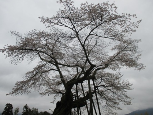 おはようございます!昨日お約束しました桜をアップします。「千年桜」というそうですが花は「エドヒガン」といって白っぽい色なのでちょっと水墨画のような・・・天気も曇りだったので余計に。私はこういう古い大木が好きなので花もですが木の様子もアップしますね。下から見たところです。幹の苔むした感じがまた良いんですよね~エドヒガンの花です。木が高いので下に落ちているのを撮りました。少し離れて全体はこんな感じです。桜に限らずこういう古い木は歴史を感じさせいいんですよね^m^4年前にもアップしたのですがやはり天気がこんな薄暗い感じで・・・でもそれがこの木にはあっている気がします。もう満開を過ぎてしまい桜もそろそろ終わりかなとは思いますがこれから色んな花が咲きだしますから楽しみですね父との同居が始まって6日目。私が食べることはすべてするので父が動かない・・・運転はしないわ食事も作らないわでは・・・ボケます。やっぱり運転はさせた方が良いのでしょうか。免許を取り上げるとボケるというのも耳にして悩みます。さあ今日も頑張りましょう!にほんブログ村応援ポチよろしかったらお願いいたします。(1人1日1回有効です)