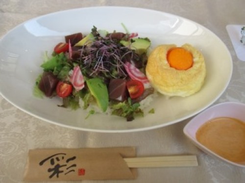 こんにちは!今日は読み聞かせの日でしたのでバタバタしてしまい更新がこんな時間になりました。昨日は家人が急に休みを取り・・・家人の物を買いに行く予定はあったので出かけることに天気も良かったので干しものや片つけをしたかったんですが・・・とにかく買い物は無事に終えお昼は外でということになりどこにしようか迷って車を走らせているうちに・・・タニタのヘルシーレストランに遭遇メニューのほとんどを500キロカロリー前後で提供ということでここに決定最近できたようでした。見かけたことなかったので。家人は日替わりランチで私はロコモコ丼(?)オーロラソース付きにしました。これです。オーロラソースをかけないと味は無し。これで470キロカロリーだそうです。美味しくいただきました日替わりランチは¥780で、オーロラ丼は¥1280でした。帰りに家人が夕飯に餃子を作るというので材料を買ってきました。それでこれが昨夜の食卓に上りました。「焼き」はもちろん私です60個家人が一人で作りまして自分で30個近く食べたかも・・・。残りを私と息子で分かち合い。美味しくいただきました、ご馳走様読み聞かせの本は明日また報告します。では今日も頑張りましょう!応援ポチよろしかったらお願いいたします。(1人1日1回有効です)