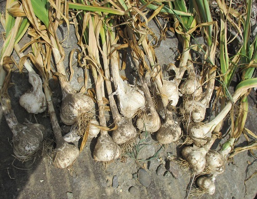 こんにちは!さっきアップしようとしてフリーズ・・・。もう一度書き直しです今朝寝ているとケータイの着信音が鳴りました。5時50分、早いママ友からでしたが、この4月から子供が電車通を始めたのでお弁当を作るのにこの時間より前には起きているとのこと。私は歩いて行けるところの高校だったので楽だったなあと思います。それはさておき目が覚めたついでに今日は起きました。目のまえの畑のキュウリに水遣りをしてついでにニンニクを収穫。これだけとれました。半分はなんだか小さいなあという感じですが自分で作った物ですから良しとしましょう。草取りもしてあげたしそれなりに努力した成果です。先日試し掘りした時にアルミホイルに包んで焼いたのですがホクホクして美味しかったです。なにも味をつけなくても甘みがあって匂いもまだあまり強くなかったのでお芋を食べているような感じでした。そのあとちょっと遠い畑にジャガイモ掘りに行き鶏ちゃんに餌やりをして戻って8時半。暑くならないうちに活動すると楽ですね~。やっぱり早起きは三文の得。でも明日早起きできるかどうか保証は出来ませんけどね昨日はやる気の出ない私に励ましのコメントをたくさんどうもありがとうございました。原因は一つではなく蓄積疲労もあるのでやらなくてはいけないことも有りますがそれなりに頑張ろうと思います。さっき公共工事の担当の土建屋さんが見えました。今月半ばくらいからまた工事が始まるそうです。先月までは大手の建設業者だったので騒音防止の防音壁もあり良かったのですが・・・今度は地元の土建屋さんなのでまたうるさい日々が始まりますそれはそれで・・・何とかやり過ごしましょう。さあ今日も頑張りましょう! 応援ポチよろしかったらお願いいたします。 (1人1日1回有効です)