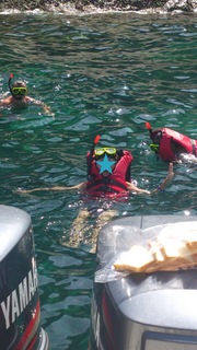 娘がケータイで撮った写真がまだあった。泳げないアイールさんの、唯一といっていい海のアクティビティ。シュノーケリング中です。