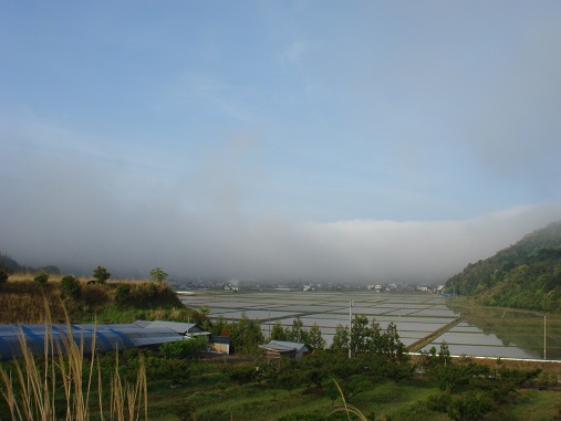 「ひる」と、聞いてあなたは思わず「よる」と応えるかもしれない。そんなあなたはご先祖様が三重の山奥の出身に違いない。山に対して川。いわゆる忍者の合言葉というヤツだ。いがだ、こうがだ、とかそんなやつだ。いや、全然違う。僕にはこの「ひる」の意味がはじめ分からなかった。しかしだ。馴染の日帰り温泉で、スッポンポンのおっちゃんらによく「最近ヌクイからヨウヒルやろ!」なんて声を掛けられるのだ。ヨウヒル?チョー・ヨウヒル(ヨンピルですが?)それは、金曜昼のこと。(分かりにくいがな)業務用ひるぜん焼きそばのタレ。・・・・うん。全くもって分からなくなってきた。悩めば悩むほど意味不明のヨウヒル。だが、次の一言で一瞬にして意味が分かった。「嫁にイモ食わせたら、ようけヘヲヒル」・・・。ヨウヒルのヨウはようけ、つまりたくさん。ヨウヒルのヒルは放るということ。する、ということ。卵なら産むということ。おお。なんと意味の深いことよ、ヨウヒルさま!はい。じゃ、数日分のレポートっす。3日前くらいの朝。四万十川の河口が霧に覆われていた。チキンさんは露に濡れた葉っぱでサラダバーのモーニング。黒須家の人々もたくさん出てくるようになった。IMOの葉っぱは既にこんなに。翌朝。ふと気づくと八重桜の樹が青々と茂っていた。はえーもんだな。そういや4月のある日、だったかな。取材に来てた農業新聞の記事が掲載されたと新聞が届いた。4月12日の全国農業新聞の最後の方のページの隅っこに載ってます。お近くのJAか農業普及センターとかに行けば見られるのじゃないか、と。そして先週金曜日。ようやく新入社員二人の歓迎会ができた。写真は二次会のバー。A子とかわいいパートさんに挟まれて、微妙・・・・イデッしかし、僕がはじめて入ったこの店のバーテンのネーちゃんは、実は過去に・・・・ハラホロヒレハレ↓↓クリックして応援