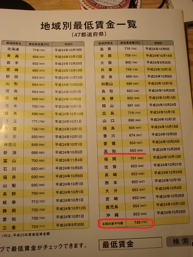 先日ハローワークに行った。退職した社員の届出と、新しい社員の雇用保険への加入手続きのためである。この手の手続きなどまだあんまり理解しているとは言えないのでまずネットで各省庁のHPを調べ手続きの流れを理解し、更に電話で地元の窓口へ電話し提出期限などを確かめ必要書類を再確認してから書類を作成したりと、結構メンドクセー僕は事務手続きが大嫌いなんだが誰も代わりにやってはくれぬ。零細企業の社長の仕事なんてお役人様のシモベだな・・・と嘆きながら日々参勤交代を繰り返している。さて。厚生労働省の出先機関、通称ハローワークに出向き書類を提出していた時にふと傍らに一枚のパンフレットが目に入った。そのパンフレットの裏には地域別最低賃金と書いてある。印をつけたけど、高知県は島根県と並んで全国最下位で652円。この手のランキングでいつも最下位を競っている沖縄や鳥取よりも低い。650円って、千葉で育った僕が知るところでは高校生のコンビニバイトの時給より低い。しかしこれでも一年前より7円も引き上げられたのだ。時給と言えば。2007年に稲作農家の時給が179円とか発表されてニュースになってたけど、その後2010年にはなんとマイナス468円。マイナスってサラ金にでも手を出して借金して暮らしたんだろうか・・・なんてハズはない。米農家の場合専業農家の割合は1割未満と言われているのだ。つまり米の生産農家の9割が農外収入で生計を立てている。この割合についてはちゃんと公表されていないようで調べても正確な数字が出てこないのだが。僕の知る限り兼業農家の多くが家族や親類にほぼ無償でコメを分けているため販売高としてデータに上がって来ない。だから簡単に赤字な数字が出ちゃうんだが、もちろん群れホームレス米農家とかが街中をウロウロしてないわな。むしろ彼らは自分で作った減農薬のお米なんかを食べ、農協とかに勤めてたりして人並み以上の収入を得ていながら、「TPPに参加するなんて日本の米農家を殺す気か!」とか叫んでたりする。立派な瓦屋根の家に住んでね。クラウンあたり乗ってんじゃないの?はい。田舎じゃ隣近所を敵にまわすような気がするのでここらでカーット! します。えーと、最低賃金の話だったな。あ、うちは法人化する前から全国平均並みの時給でパートさんを雇用してますよ。僕の収入は今年もまた青年就農給付金支給されるくらいしかないけど、それと人を雇うってことは全く別の話だからねぇ。パートさんや社員にはそれぞれ家族があって各々の価値観で生きてきゃいい訳で。。昨日は晴れていた。空さまが朝のお散歩を。ちょっとお腹大きくなってきたんじゃない?第一鶏舎の運動場はもう1/3くらい草が食べつくされている。一方第二鶏舎は・・・全然出てこね。それでも出口近辺5m位だけ草が無くなっている。カボチャの苗がだいぶ大きくなってきたのでテキトーA子にテキトーに植え替えてもらった。エンドーさんも。今朝。朝から小降りの雨が降っていた。最近麦わらがA子のお手伝いをしてくれる。どーやら体力をつけようと頑張ってるらしい。雨でもマヂメにやってる姿を記念撮影してくれと頼まれてメンドーながらパチリと撮ってやる。ハイハイよござんすか?一応女子と紛れもなく女子の二人に来る母の日ギフト用ラッピングを考えてもらう。ま、どちらが・・・という意味のない話はしませんよ。なませんよ。夕方には雨があがった。今日もたくさん暖かい雨が降った。明日はまたニョキニョキと緑が伸びてくるな。↓↓クリックして応援
