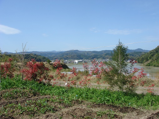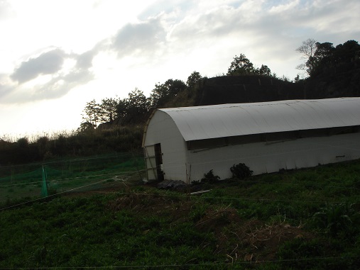 ニュースでも騒がれてるように今日はエッコロ雨が降った。あ、繰り返しになるけどエッコロは高知西部幡多(はた)地区の方言、いわゆる幡多弁で「とっても」の意味なのだよ、ガハハ・・・って、和田勉じゃないぞ~はい。エッコロな雨の前日、即ち昨日は朝から快晴。A子先生が弟子の麦わらにエサの混ぜ方をご指導中。この二人は見てるだけで面白い。ちょっとナヨッとした麦わら。対してオッ3みたいなA子。A子が日曜日お休みなので麦わらが週一日だけ農作業を担当しようって訳だ。大丈夫かな~?A子が朝の見回りで新しいチキンが無残にも尻を食われて昇天なさっていたのを発見した。ので、念のため僕が第二鶏舎を見回りに行くと・・・・ヤラレタ。もう一羽昇天されていた。この食い跡は・・・・・TNKに間違いなし。オノレ・・・フェンスが破れてないか見回ったが穴は空いてなかった。ということは運動場の出入り口のココを潜りこんだという訳だな。こんにゃろもちろんすかさず岩と束石で塞いだ。そしてこの夜から第二鶏舎番としてツキかヒナかを見張りにつけることにした。しかし新しいチキンどもは全くお外に出てこない。こんな鶏ははじめてだ。チキンは葉っぱが大好きなハズなんだが・・・・さてさて、いよいよ発表するかね。先日、元プロ・キャーメラマンの麦わらに卵とチキンさんの写真を撮ってもらった作品をペローンと紹介するぞ。ほれ見ろ。うーん、マンダム。ま、さすがにいい仕事じゃないすかね。感心。ホホォかわって今日は朝から雨。昼に近づくにつれて土砂降りと共に強風になった。久々にビシャビシャに大地が濡れた。コレで勢いよく草が伸びるぞ、シメシメ・・・午後。2時過ぎくらいに雨が止み、お空が明るくなってきた。と、共にチキンさんがワンサカお外に出てきた。葉っぱうめっ、とか言って食ってんだろな。えんどーとかヴぉちゃも随分伸びてきた。そろそろ植え替えするぞ、A子よ。またナナメッた畝に不均等に植え替えしてくれよな~大雨で濁った四万十川。春先の大雨。新緑の季節への序章。自然界は止まっているようで、だが一秒も休まずゆったり泰然と流れて行る。人もまた、自然の一部。その心は常に流動し、然るべき方向へと流れて行く。気付いた時にはとても遠くに居て、戻ることもできず。。↓↓クリックして応援