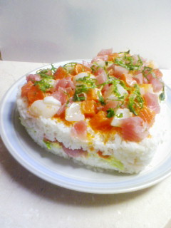 昨日はご存知のとおりバレンタインデー!娘は塾。息子はスポ少。妻は息子のスポ少の付き添い。帰りは19時を回るとのことで、私が夕食の準備バレンタインデーなので、酢飯でハート型のケーキを作りましたネタはサーモンマグロホタテとびっ子卵のマヨネーズ和えレタスの千切り大葉結構いけますよヨシケイのメニューに載っていたのを真似ただけなんですけど、、、型は牛乳パックを使いましたん