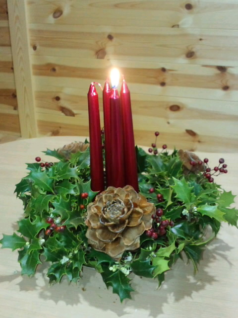 12月突入。早いなあ、もう!そろそろ年賀状の準備もしなきゃ。私は今年自分の祖母が亡くなったんで、先月中に友人達には喪中はがきを郵送済み。なのでダンナの分(もし出すって言えば長男の分も?)だけを準備します。例年通り写真入りにしようかと思っているけど、今年あんまり写真撮ってないなあ。あるかしら、それなりのヤツ。年末年始のことはとりあえず置いといて、まずはクリスマスですね。次男の幼稚園でもクリスマスの準備が始まりました。一昨々日はアドベントクランツに点灯しましたよ。我が家でも幼稚園に倣ってアドベントクランツを作ってみましたよ。ヒイラギはうちの庭木から採ったもの。シーダーローズ(ヒマラヤスギの松ぼっくり)は公園で拾ったもの。野バラの実はうちの前の藪で採ったもの。ほぼ自給自足なアドベントクランツです。子供達とアドベントの歌を歌いながら一本目に点灯。次の週には二本、その次は三本、四本目点るときにはもうクリスマスです。子供達のクリスマスプレゼントもそろそろ考えないと。つい先日我が家にも3DSが導入されたので、長男はDSソフトとかがいいのかな。欲しいのがあれば、だけど。次男は最近トミカ系にはまってるけど、どうかなあ??あ、ちなみに3DSは長男の希望で買ったけど、家族共用ってことになってます。だから自分にもなんかソフト欲しいな~。ゲームとかはしないんだけど、脳トレとかお絵かきとかならやってみたい。いいのあるかなあ。