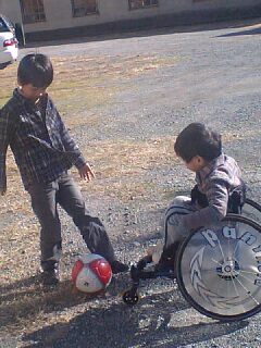 最近子供らが外で遊んでる写真を載せてないなと思って、携帯のデータフォルダから適当に選んでみました。季節柄外出は減ってますが、寒くても外で遊びたがるのが子供ってもんですよね。そのわりに寒がりなんだが。うちの子らは。これはまだ12月で今ほど寒くなかった頃。マー坊も車いすの操作に慣れてきて、車いすサッカーもどきをして遊んでいます。ミクロさんのタイヤはいわゆるレーサータイヤなので、未舗装の地面ではたまに苦戦してます。 冬休みの宿題であるなわとびにいそしむハー坊の横で、歩行練習するマー坊。困ったことに車いすの方が楽に移動できることを知ってしまった故、歩行練習への熱意が下降気味。最近こうして両腕の力で両足を浮かせて遊ぶのにはまってます。ドヤ顔で何回もやってます。それもいいけど歩こうぜ、ボーイ・・・ 大寒波到来中のつい先日、公園に遊びに行きましたが、寒すぎて1時間ほどしか遊べませんでした。この冬、うちの地方はホントに雪が降りません。そしてその分冷え込んでます。風はヒンヤリ、空気はカラカラ。ますますインフルエンザには要注意ですな。