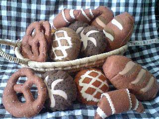 風邪に続いておたふくかぜにもかかってしまい、今月はほとんど幼稚園を休んでしまってた次男マー坊。この前の木曜日からようやく登園してます。でもまだパワーは戻っていないようで、とってもおとなしいです。まあ動けないのはもともとですが、普段はホントによくしゃべるヤツなので。昨日は久しぶりにリハビリにも行けたのですが、寝たきり生活が続いたせいで歩行練習はおろかほとんど立位をとることもなかったのでダメダメでした。やる気もイマイチでほとんどリハビリにはなりませんでしたが、療法士さんに今の状態を見てもらえた点はよかったかも。やっぱ筋力は落ちちゃってる模様。筋力とやる気がもどる日はいつかしら??それはさておき。次男が休んでいる間、当然私も外出はできなかったわけで・・・なかなか不便な日々でした。でも付き添い通園だの、役員の仕事だの、保護者ボランティアだの、ずっと出かけてる日が多かったので、ここでうちにいる時間ができたのはよかったのかな。せっかくだからひさしぶりに手作りおもちゃ作り。フェルトのおままごと小物、パンを5種類作りました。ケーキ・お寿司・ランチボックス・果物なんかは前に作ったんだけど、ちゃんとしたパン系はなかったのですよね。フェルトが余ったのでもう2セット作って、それは幼稚園のおままごとコーナーにおいてもらうことにしました。(写真のかごの中のが幼稚園の分)幼稚園にも以前他のママさんが手作りした布製野菜とフェルトのケーキがあるので、僭越ながらそれに仲間入りさせていただきました。みんなで使ってくれるといいな。↓この本に載ってます。パッチワーク通信社の本フェルトのおままごと小もの